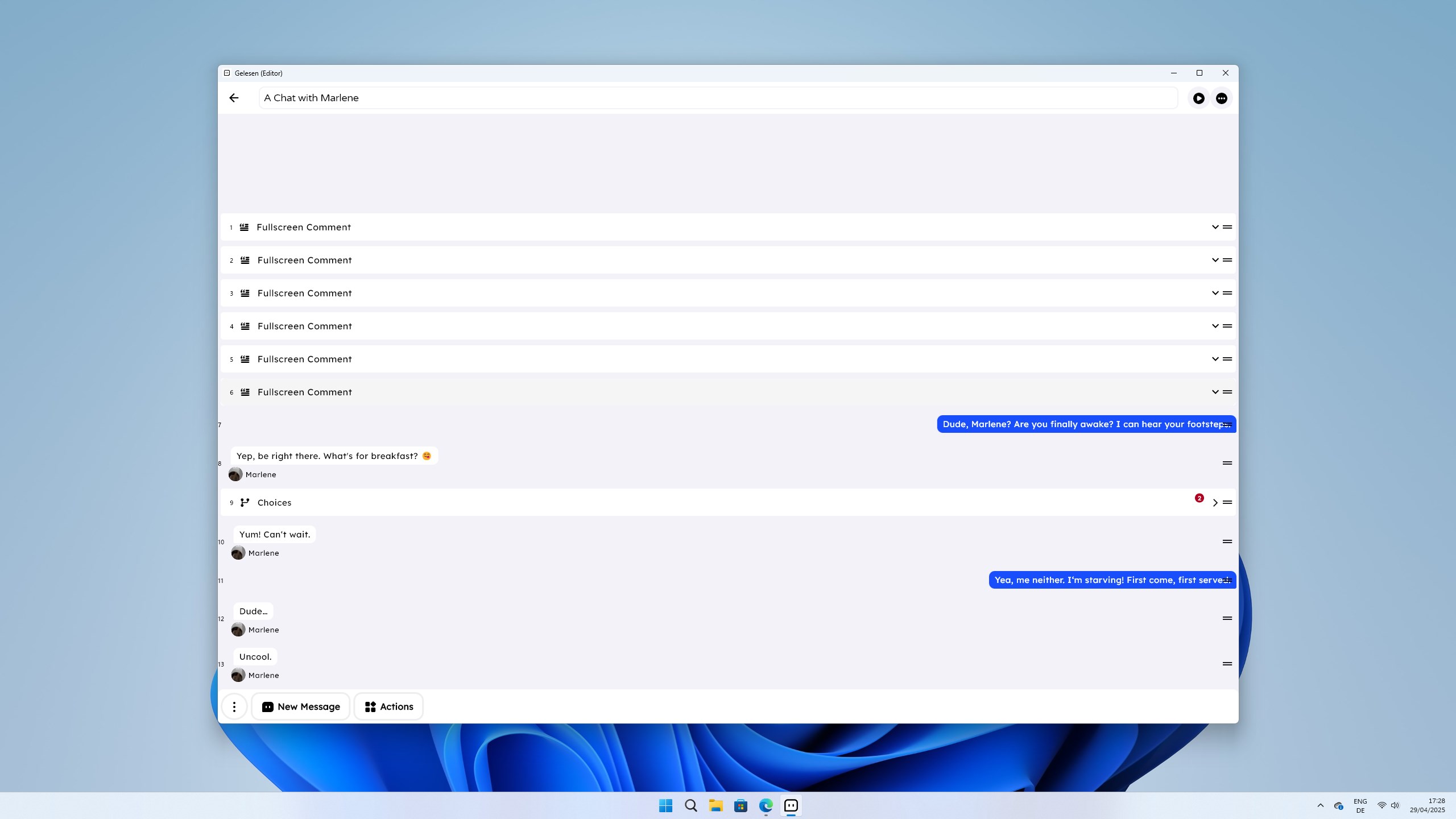 With Gelesen you can build nonlinear chat stories with branching paths, then publish them for others to discover and experience.